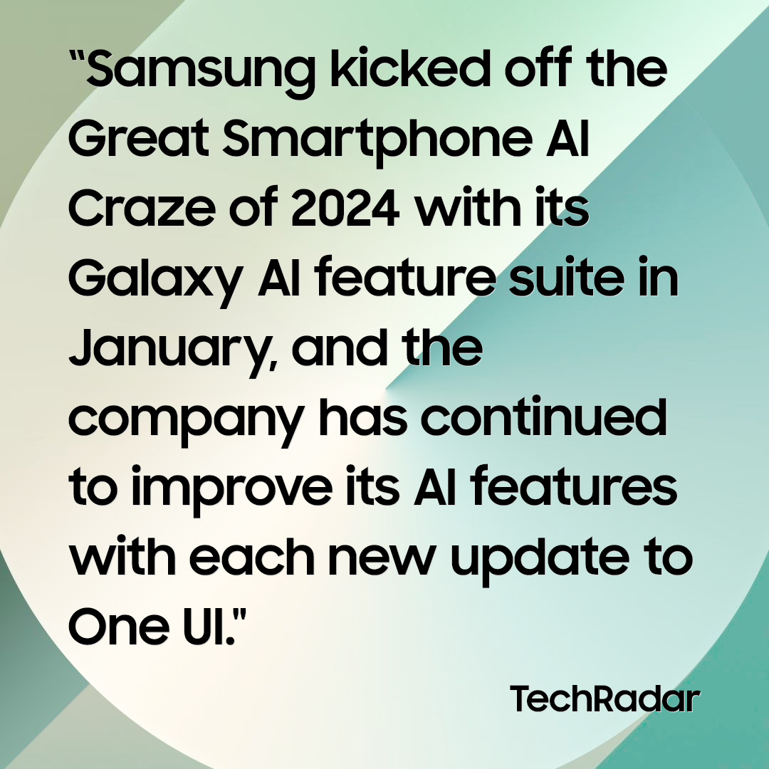 “Samsung đã mở đầu xu hướng AI trên smartphone năm 2024 với loạt tính năng Galaxy AI vào tháng 1 và không ngừng nâng cấp các tính năng AI của mình qua từng bản cập nhật One UI.”